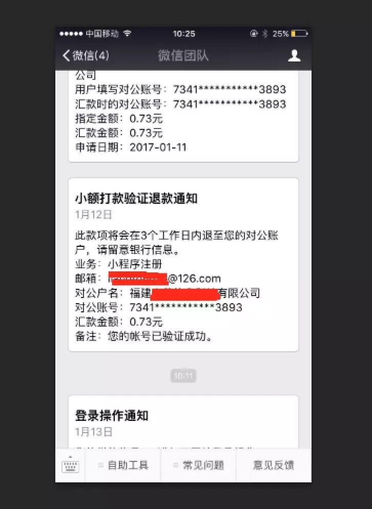 公众号已收到”小额打款验证结果通知“和”小额打款验证退款通知“,也收到“你的账号已验证通过”