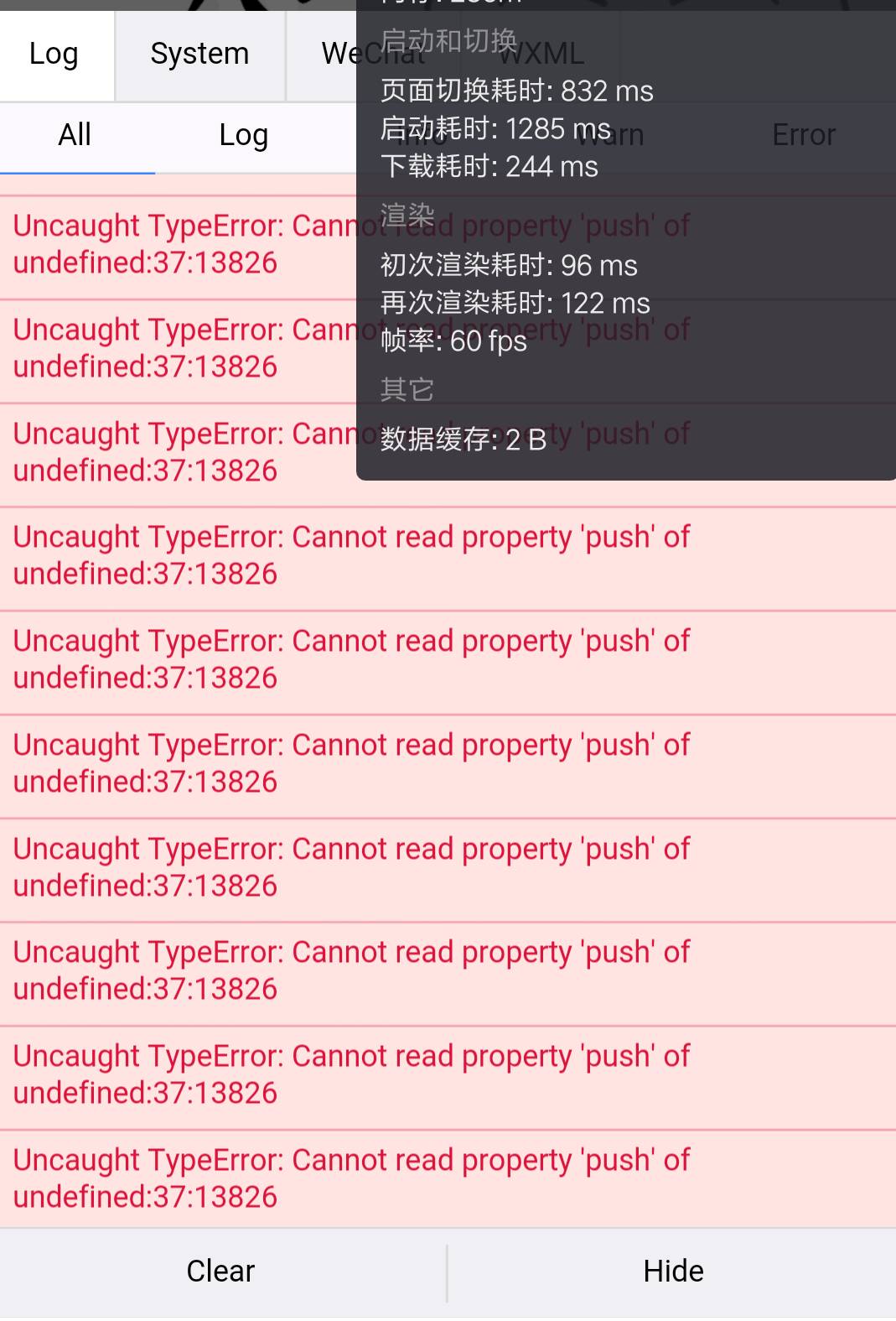 手机端报错如图: