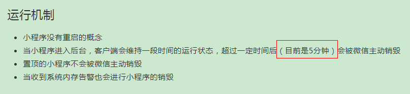 文档上是说进入5分钟后会被微信主动销毁,但是我实际测试时,关掉小程序10分钟后再次打开,并没有重新加载小程序,`onLaunch()`方法并没有调用?