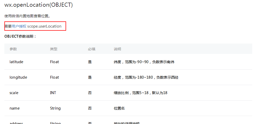 这里的时候显示wx.openLocation需要授权