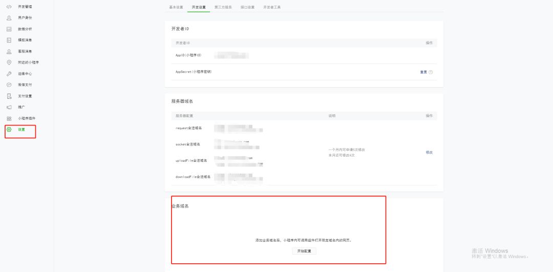 通过公众号注册的小程序,找不到设置业务域名的入口
