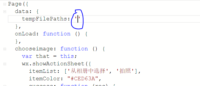我想实现点击图片实现选择头像,是在JS文件中的tempFilePaths: ''(我画圈的地方)写图片地址吗?还是在别的地方,求大佬赐教