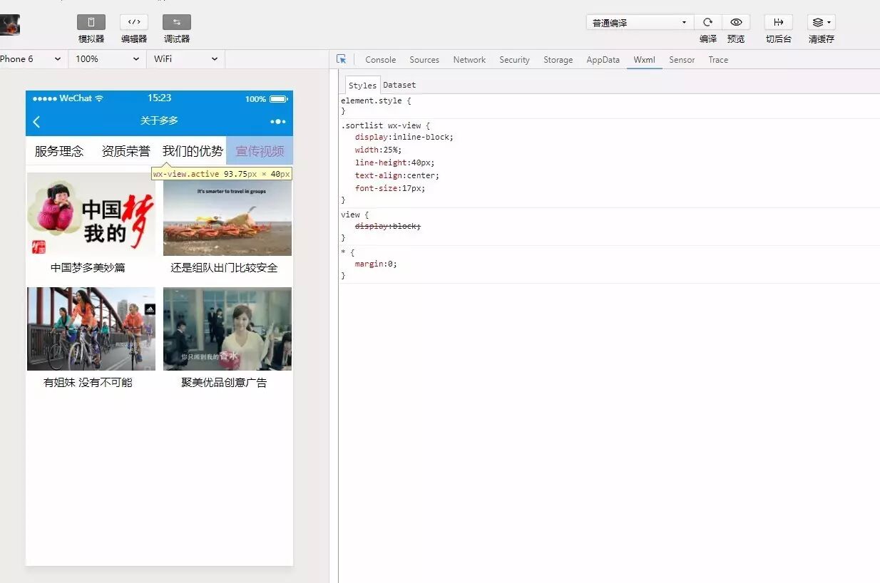 如图,想看wxml结构,如“宣传视频”, 箭头点来点去,只显示wxss......无语,