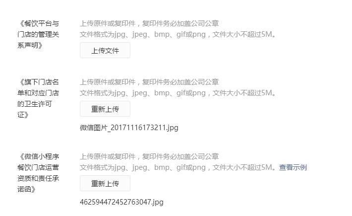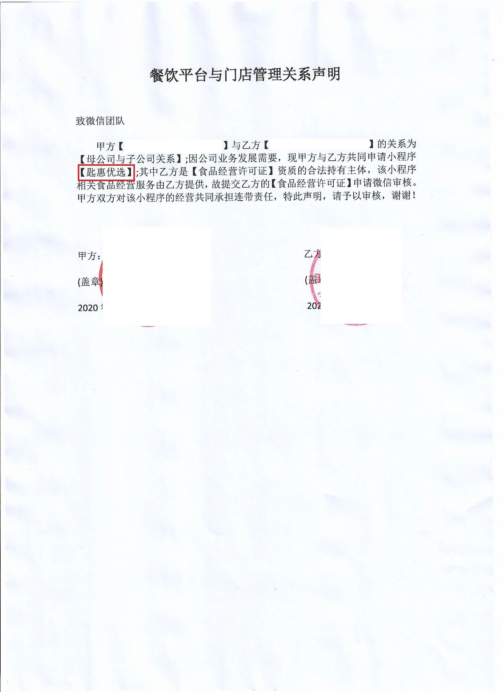 《餐饮平台与门店的管理关系声明》文件是否有格式要求或者能否提供示例?还是说改项中三个文件提供其中某一个即可?