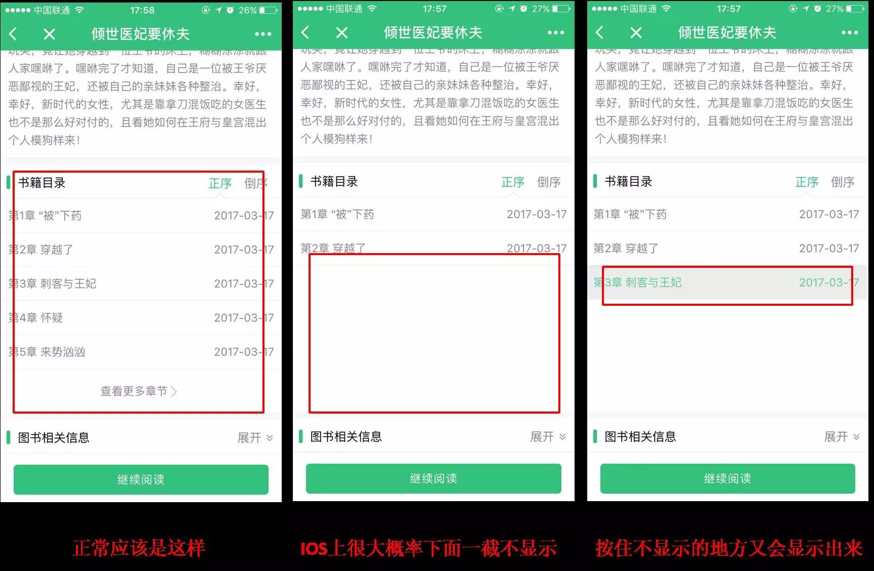 但是很大概率会出现内容不显示的问题(如图2),按住不显示的地方又会显示出来了(如图3)。