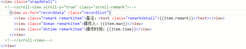 wx:for="{{recorddata}}",数据绑定需用双括号括起来,不然没绑定到