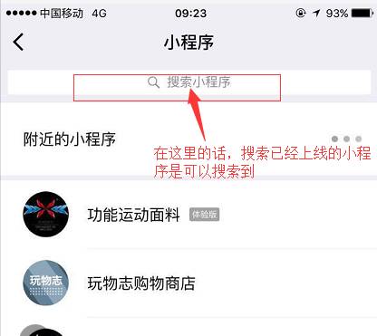 目前的情况,图一的入口 好像搜索不到小程序(已关注的除外)