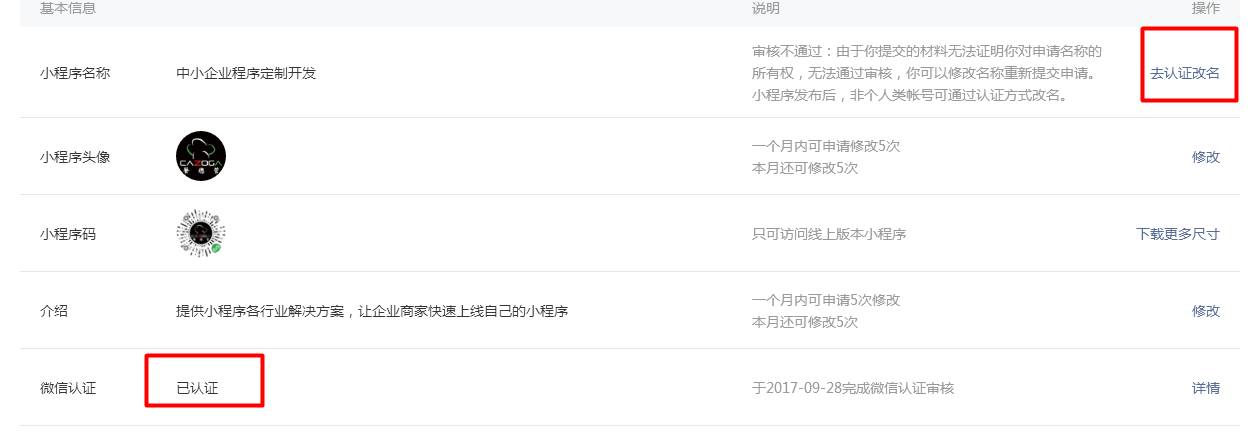 小程序发布后,非个人类帐号可通过认证方式改名。