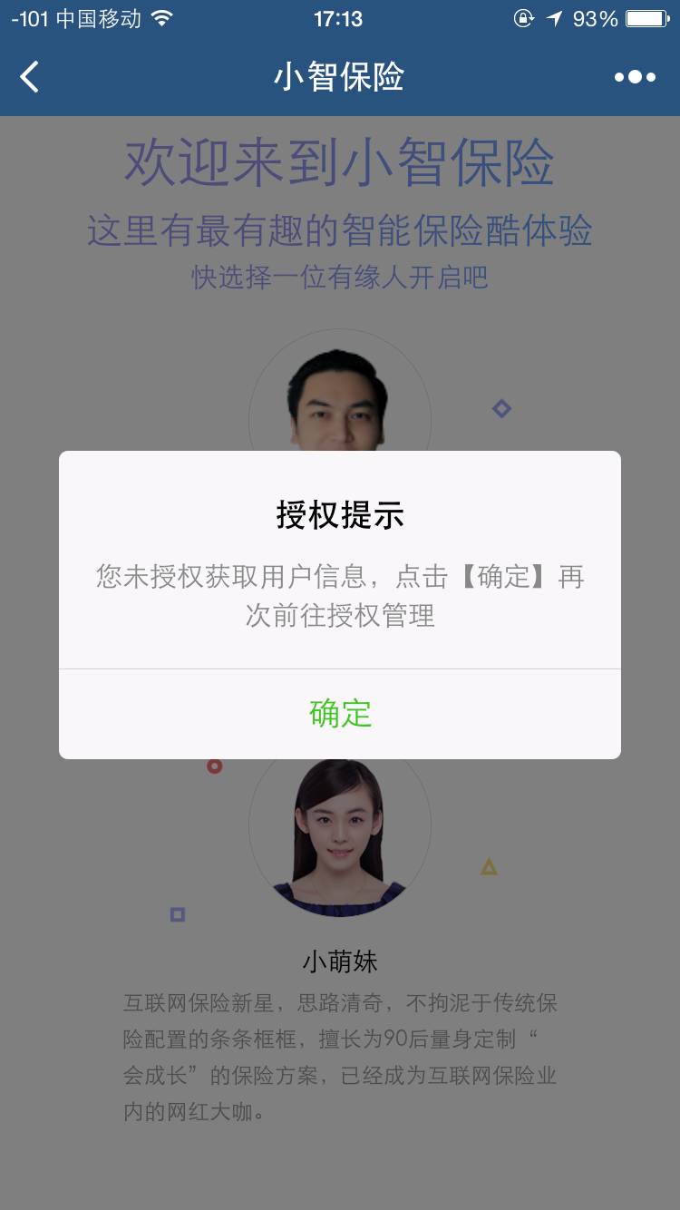 第一次进去小程序,弹出获取授权信息的modal,点击拒绝,会跳出一个modal,就是点击确定去设置是否允许获取用户信息的modal,然后会跳到设置页,在设置点击允许以后,再点击左上角返回按钮,之前显示确定的那个modal有的时候还会在,再点击一次然后再返回才消失,这是一个偶然事件,但是在我们的测试机上已经发生了好多次,希望官网能解释一下!