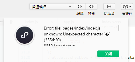 自从更新版本后,在编辑器上点击预览或者点击上传的时候经常弹出下面的提示,然后我点击关闭按钮后再点击预览或者上传按钮就成功上传了,但是真机打开却提示缺少某页面,程序无法运行。然后我再把编辑器关掉,重新打开再点击预览或者上传按钮就成功上传了,没有任何报错,而且真机测试完美运行。