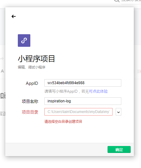 你好,其实这里并不必须是空白目录。如果目录是以前做的小程序项目目录,这里应当也是可以添加的。