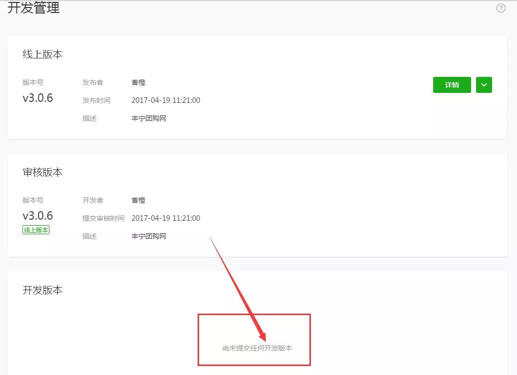 我的情况是已经有一个线上版本,并且无审核中版本,这时我的小程序有一些功能更新,需要重新提交审核,但是我怎么提交都没有任何反应,在开发者工具中一切都提示正常,但是管理平台内始终显示“尚未提交任何开发版本”,是我哪个流程错了吗?求指点! 情况如下图,已经有20天一直提交不上去了。