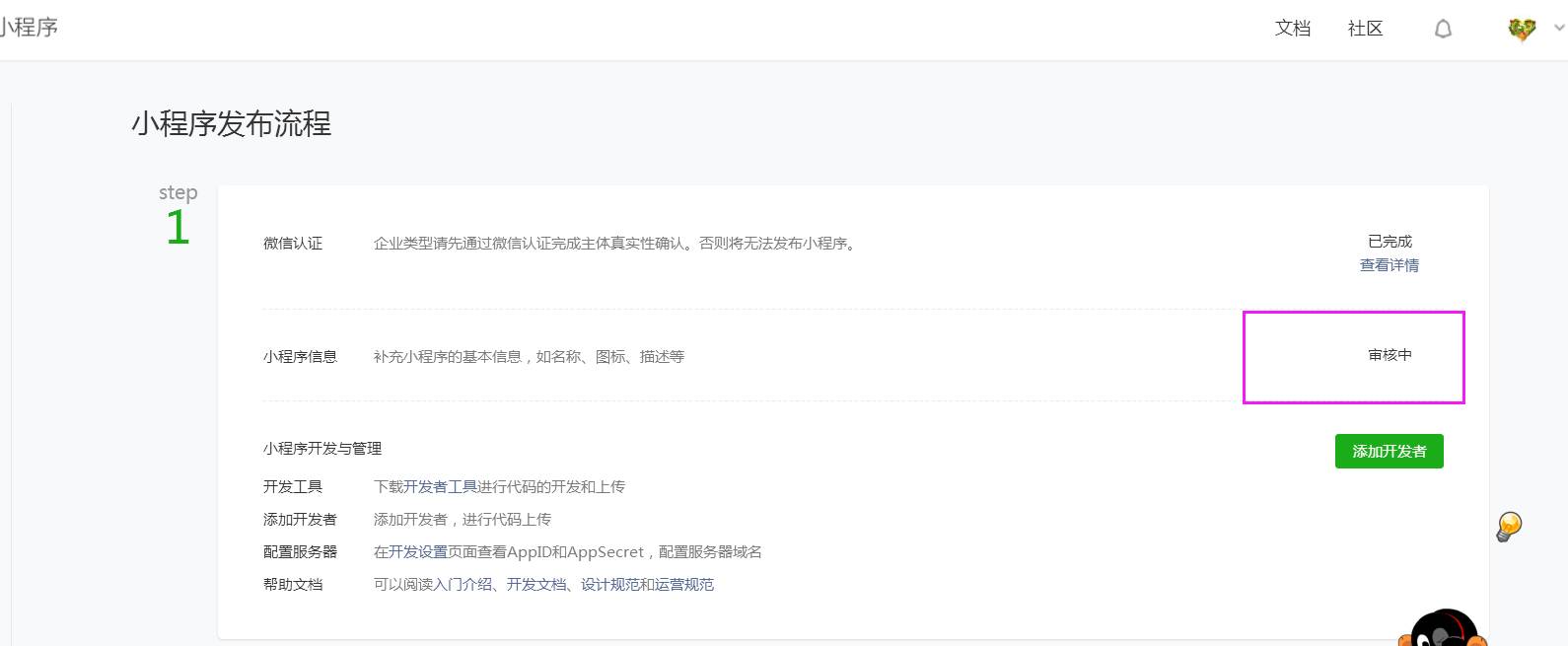 由公众号复用资质创建的小程序, 认证在20号已通过, 为什么会出现这样一个审核中的字样? 这直接导致了 无法填写小程序的的基本信息, 希望官方给个解决办法