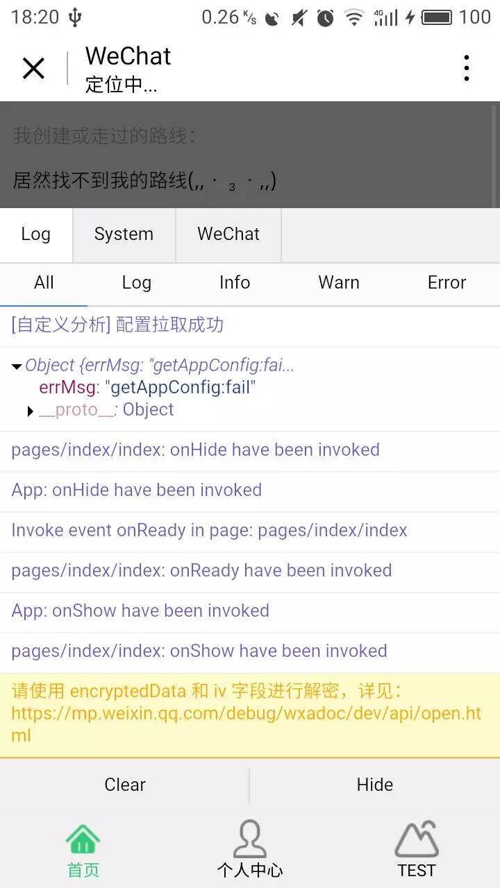 进入小程序时,提示getAppConfig:fail,并且在获取userInfo时出现下图warning,使用iphone测试没有发现这个问题。