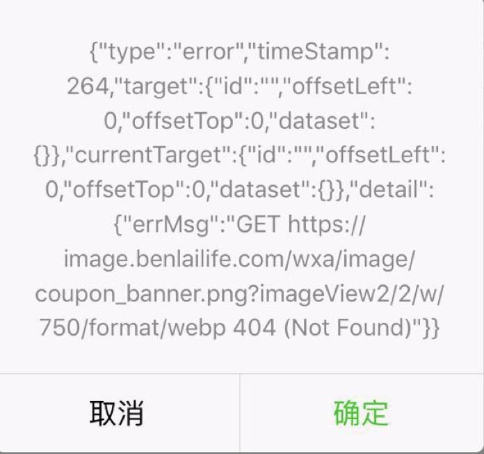 尝试用image组件加载一张webp格式的图片(路径:https://image.benlailife.com/wxa/image/coupon_banner.png?imageView2/2/w/750/format/webp),当不支持时,binderror返回的errMsg说的是404 (Not Found),并不能区分是真的404还是不支持。