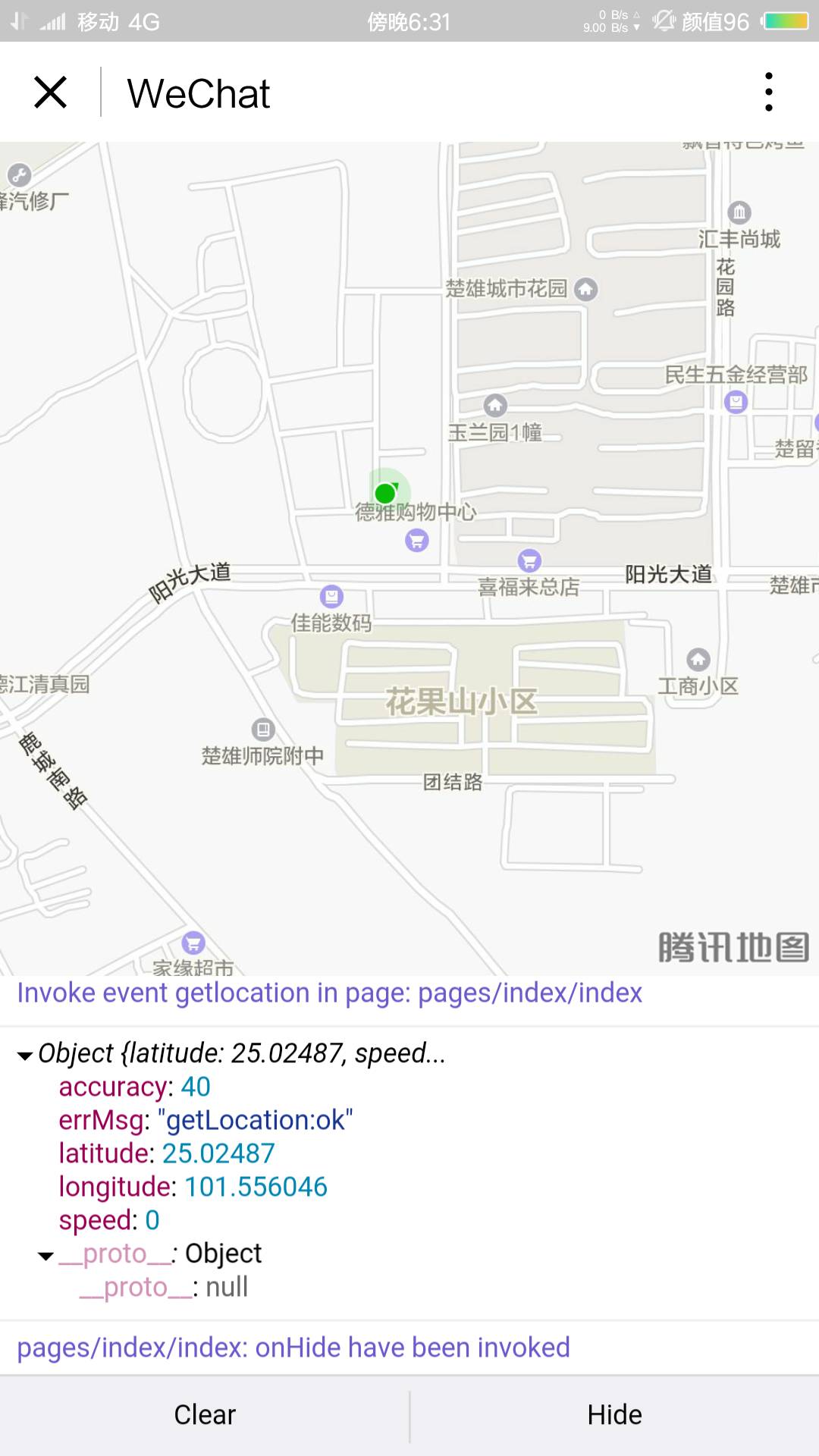 代码很简单,只调用了getLocation方法,但定位的图标好像被切去了,显示不全。