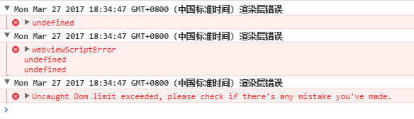 “DOM limit exceeded”的原因:出于性能考虑,结点总量有个限制,所以请不要在页面中使用过多节点。
