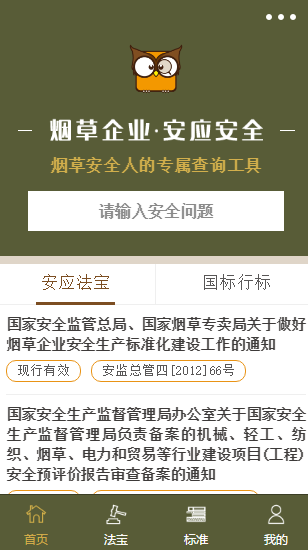 我们的小程序是用于烟草企业客户查询安全生产相关标准,