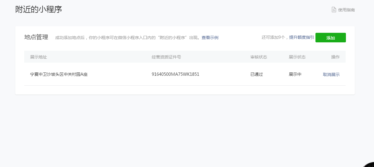 线上流程走了还是没通过,现在小程序不在附近显示啊!