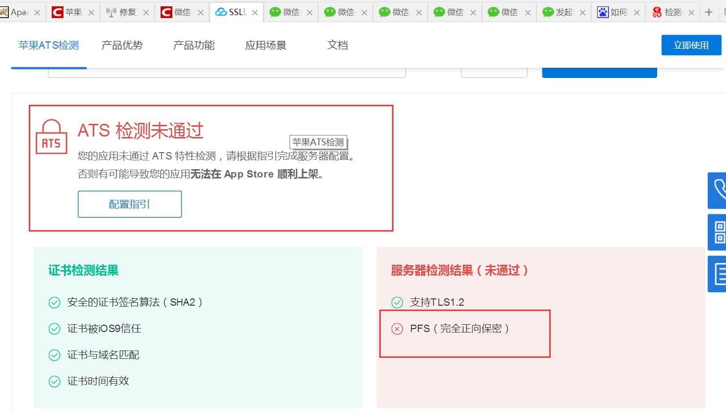 发现是有一个PFS(完全正向保密)不通过,但是奇怪,我们公司的APP也是使用这个域名上苹果APPSTORE的,现在都在正常使用,感觉不像这个问题,请腾讯的大神帮忙看看大概是什么原因?现在完全是无解状态中~~
