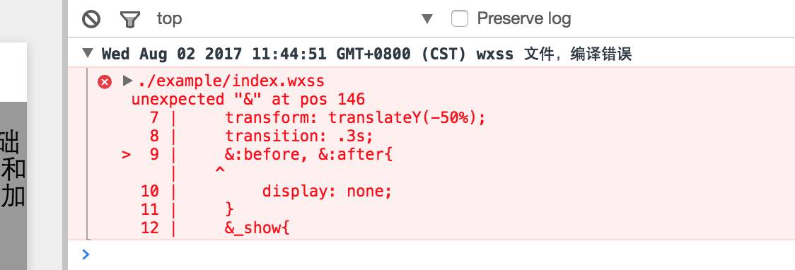 .wxss 文件 最终编译成 .css 文件,css 文件里没有 & 选择符,当然会报错。