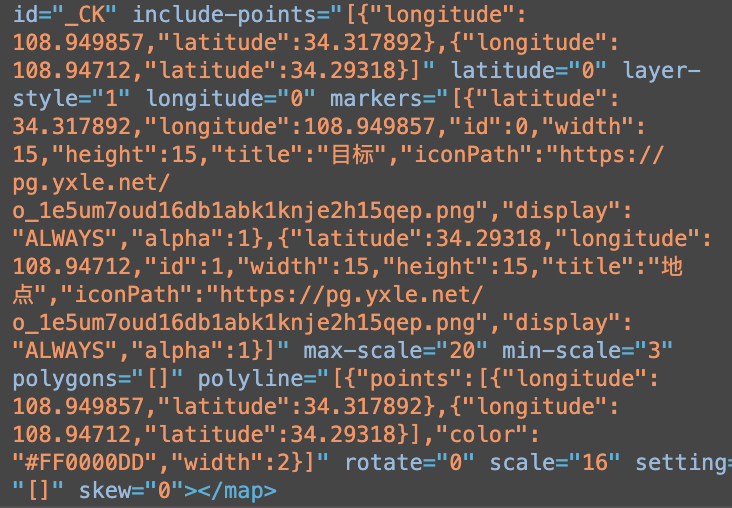 上图是在基础版本库1.4.0前,设置include-points属性可以对视野进行缩放,将所有points完全呈现在地图中。