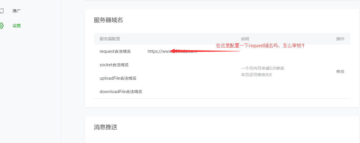asdebug.js:1 http://www.930edu.com/api.do 不在以下合法域名列表中,请参考文档:https://mp.weixin.qq.com/debug/wxadoc/dev/api/network-request.html