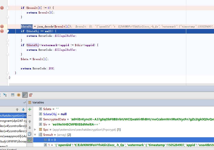 如上图,通过解密后,群ID获取到,但是群ID中却返回了个其他字符,导致在json_decode的时候,解析失败。想要问下这是啥情况