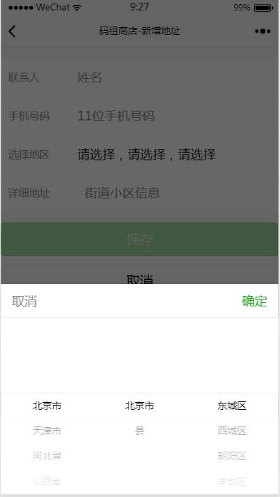 正常情况是这样的:点击选择地区下方弹出省市区。