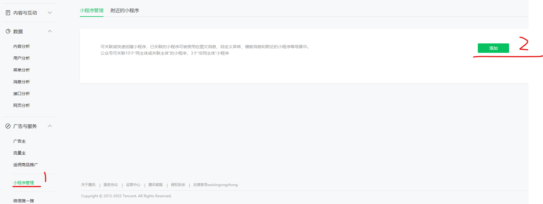 你好,这里查到的 小程序的主体是企业。而你的公众号是个未认证的服务号,请确认下是在同一主体下。