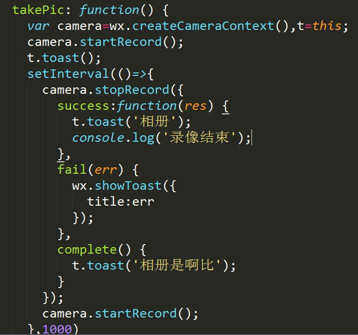 为什么新增加的camera对象无法调用stopRecord方法,不管怎么调用都没有反应,不成功不失败不完成,就像从来没有调用过一样?