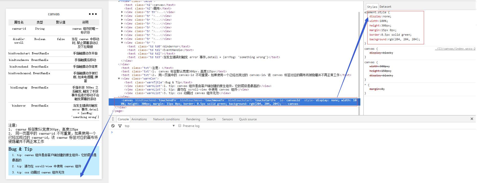 使用canvas组件,结果不显示,打开样式面板调试发现初始化就是display:none
