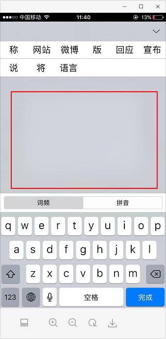 如果我想输入文字, 但常规的文字里没有, 需要下滑查找更多, 但是不行, 苹果输入法会直接收起, 无法下滑, 这应该算一个bug