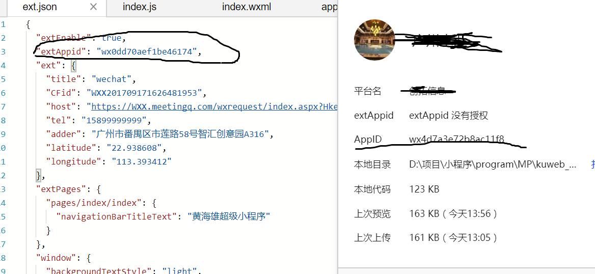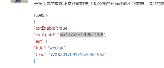 不好意思,官方文档我有仔细看了很多次了,对extAppid的值搞得不是很清楚,因为我在另一个帐号下的开放平台extAppid与Appid填的都是小程序的,却能正常,这个就不行。高手帮帮忙解说一下,看一下问题出在哪里?