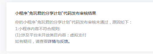 小程序“兔玩君的分享计划”代码发布审核结果