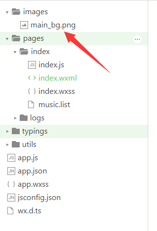 假设文件目录结构为如下形式,我们需要在index这个page中引用main_bg.png这个文件