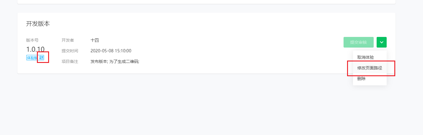 我知道体验版那有修改路径的地方,但是只能手动生成吗?不能通过接口生成体验版的二维码吗?