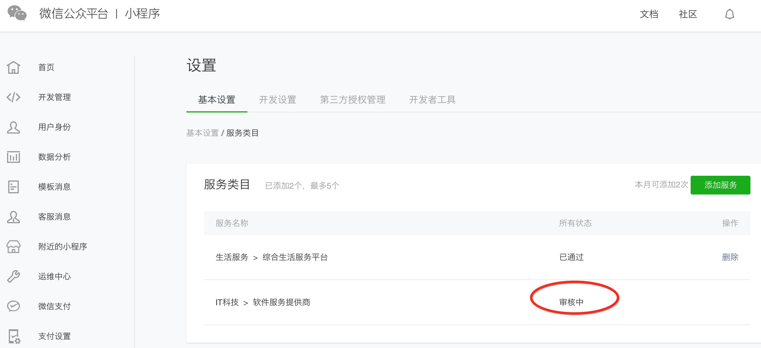 由于服务类目的原因提审小程序被拒,补充材料新增类目,确停在这了。。