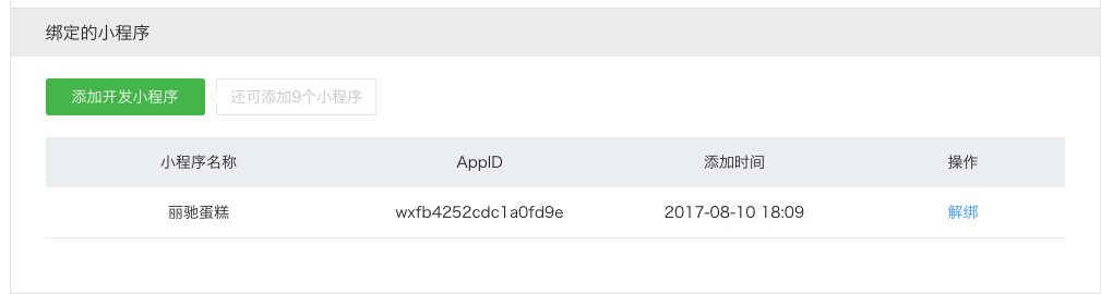 我申请完下程序后,在微信开放平台也绑定了,如图: