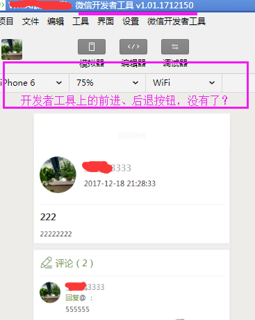 新版本开发者工具(v1.01)上的前进、后退按钮 没有了?还是跑到哪去了?每次进页面都要ctrl + b重新构建,这样开发多坑爹啊?!