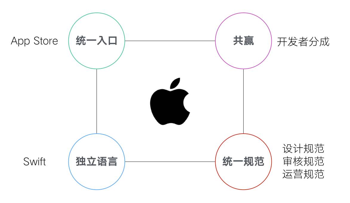 按照前面的定义,我们可以很容易得出,苹果 App Store 的生态结构: