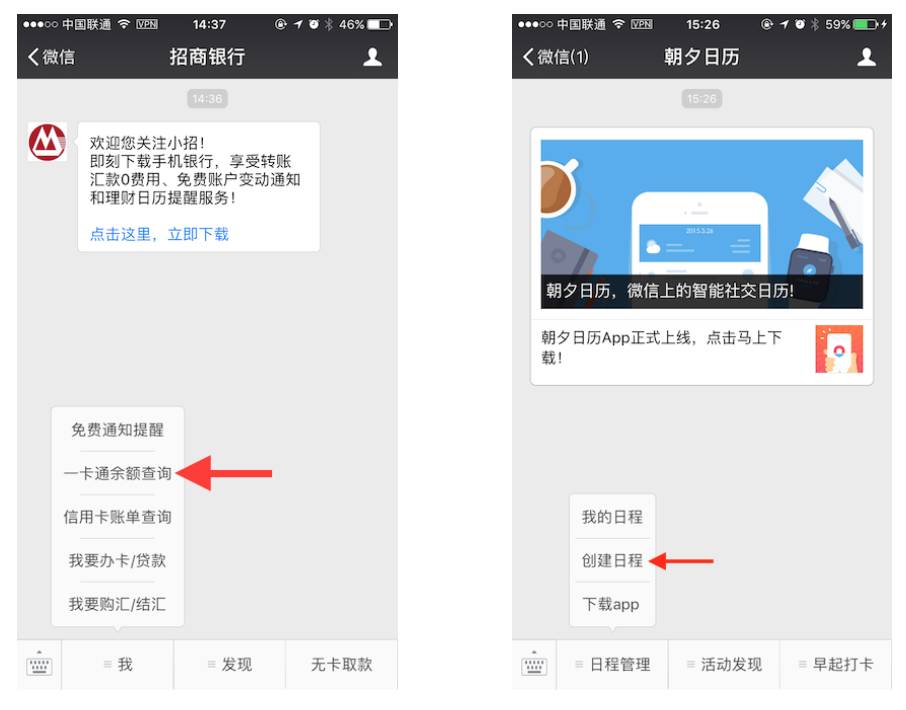 服务号层面,招商银行信用卡经常被提起,「朝夕日历」是一个体验层面做得非常优秀的日程管理服务号: