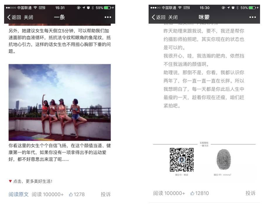 我们可以看到了「一条」这样的订阅号大户,也看到像「咪蒙」那样的让许多媒体人眼红的订阅号: