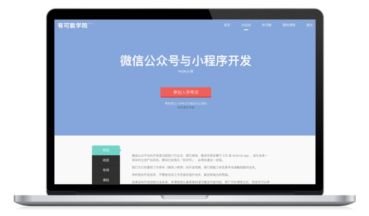 对于第 3 点,我是深信不疑的,所以有可能学院在今年7月就推出了「微信公众号与小程序开发」课程,周期为 2 个月,认真培养和我们一样有前瞻性的人。