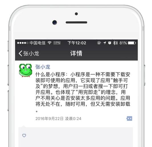 这意味着,开发者可以完全放心把精力和资源放到小程序上。