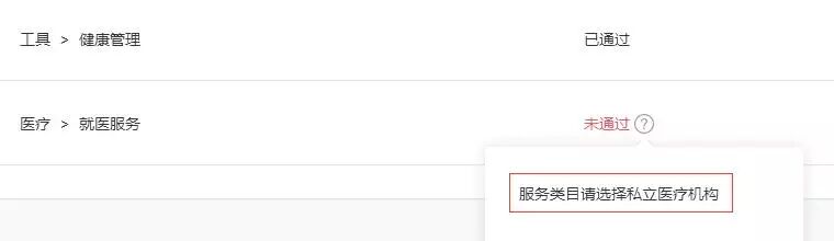 选择 医疗 > 就医服务 审核不通过,叫我选择 私立医疗机构,