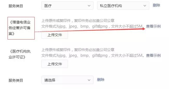 可是私立医疗机构要求上传《增值电信业务经营许可备案》和《医疗机构执业许可证》,医院没有《增值电信业务经营许可备案》,并且样本中显示《增值电信业务经营许可备案》中要求不含医疗保健等内容呀。两证有点矛盾啊