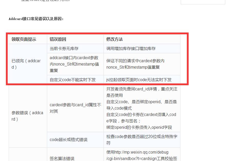 商户平台发放代金券,按照官方7月20号发布的公告提示。需要调用wx.addCard 批量插入卡包,不知道官方有没有测试过。根本就不会成功。网上搜集,大家都有这个问题。只能等等等,发邮件给技术支持也不回复。