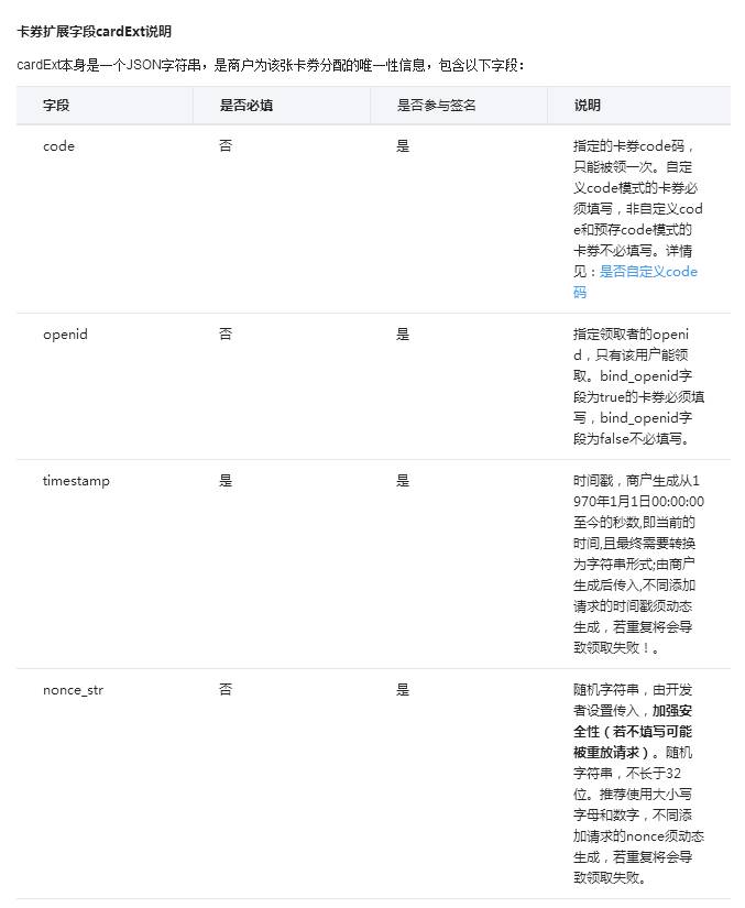 addcard接口内cardext参数内nonce_Str和timestamp值重复
