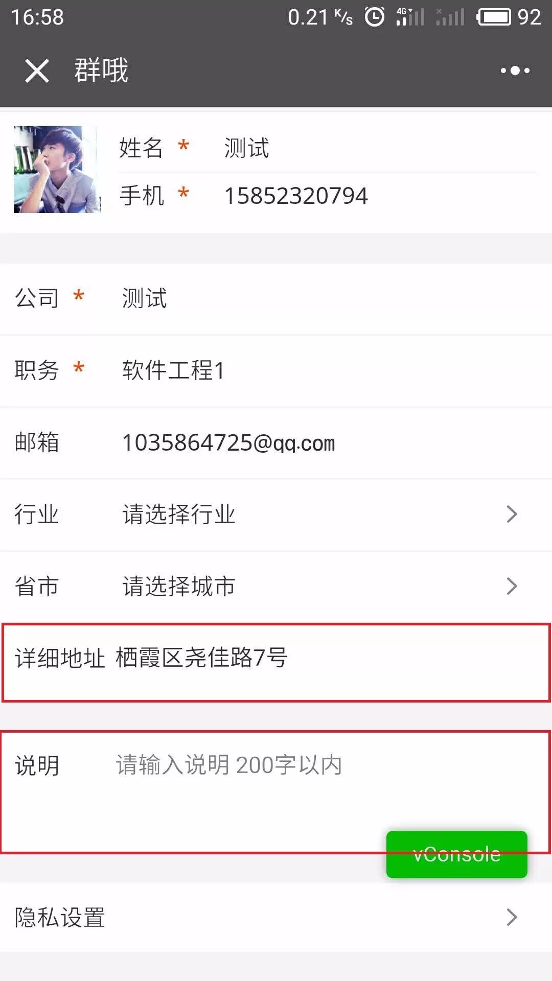 红框处为textarea上图红框处为最容易触发cibug的区域,textarea是看不到的,但是在ios中 确确实实会将在姓名或电话的内容赋值到textarea中